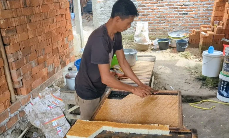 “Seluruh tahapan dilakukan bertahap, mulai dari memasak bahan, mencetak adonan, hingga proses pemotongan setelah adonan mengeras,” kata Anis.