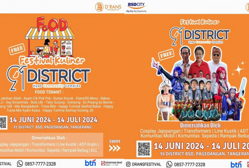 Di sini, hadir beragam kuliner yang wajib Anda cobain. Festival kuliner ini diselenggarakan di 91 District BSD, Pagedangan, Kabupaten Tangerang, Banten.