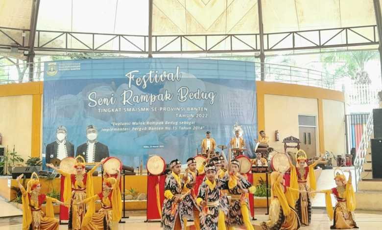BISNISBANTEN.COM — Dinas Pendidikan dan Kebudayaan (Dindidkbud) Provinsi Banten menggelar festival seni Rampak Badug tingkat SMA/SMK se-Provinsi Banten tahun 2022, pada Rabu, (23/3/2022). Festival yang digelar di Gedung Plaza Aspirasi, Kawasan Pusat Pemerintahan Provinsi Banten (KP3B) ini bertajuk “Evaluasi Mulok Rampak Bedug sebagai Implementasi Pergub Banten Nomor 15 Tahun 2014”.