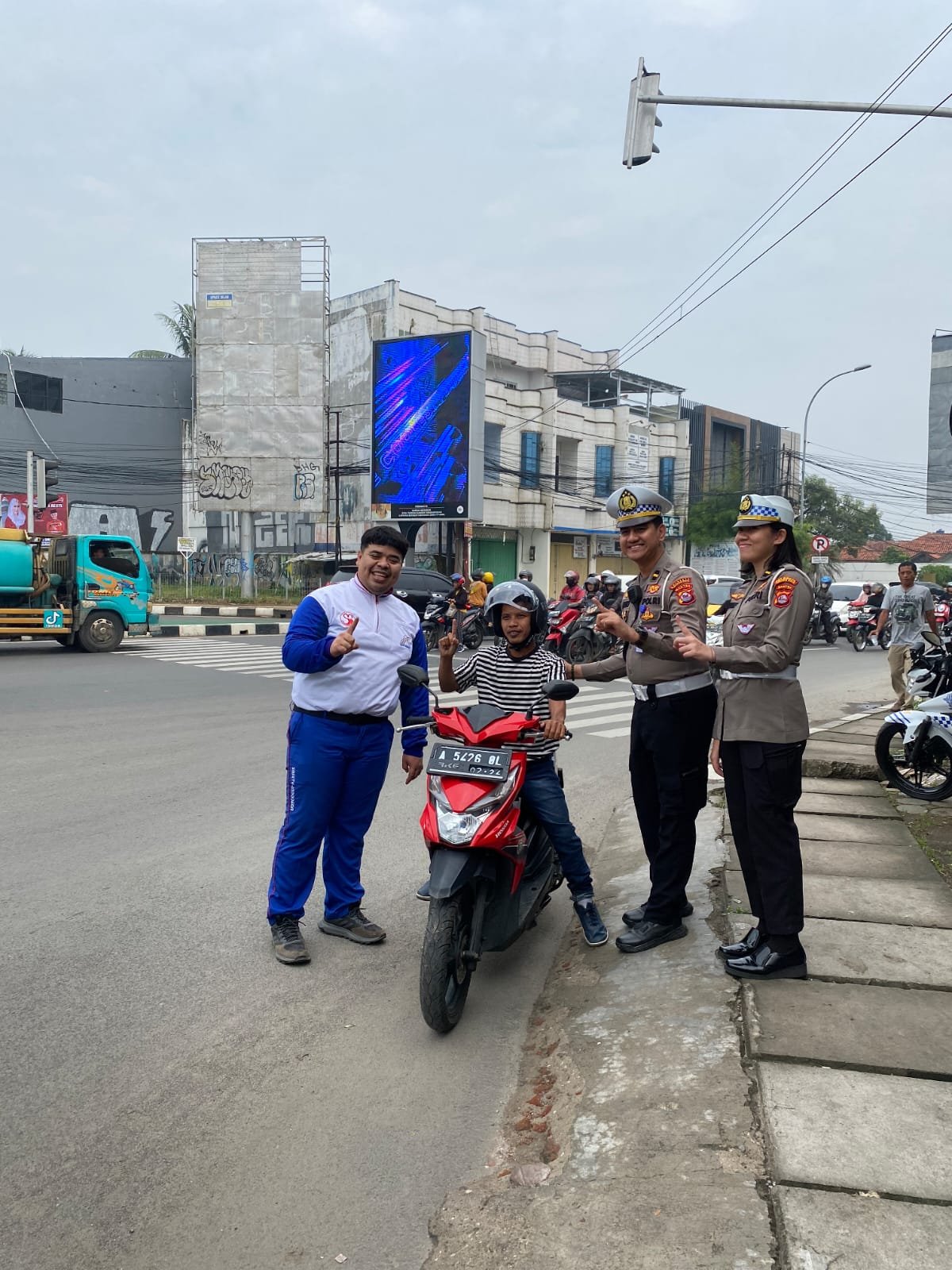 Kampanye #Cari_aman, Honda Banten Bagikan 10 Buah Helm ke Pengendara Motor