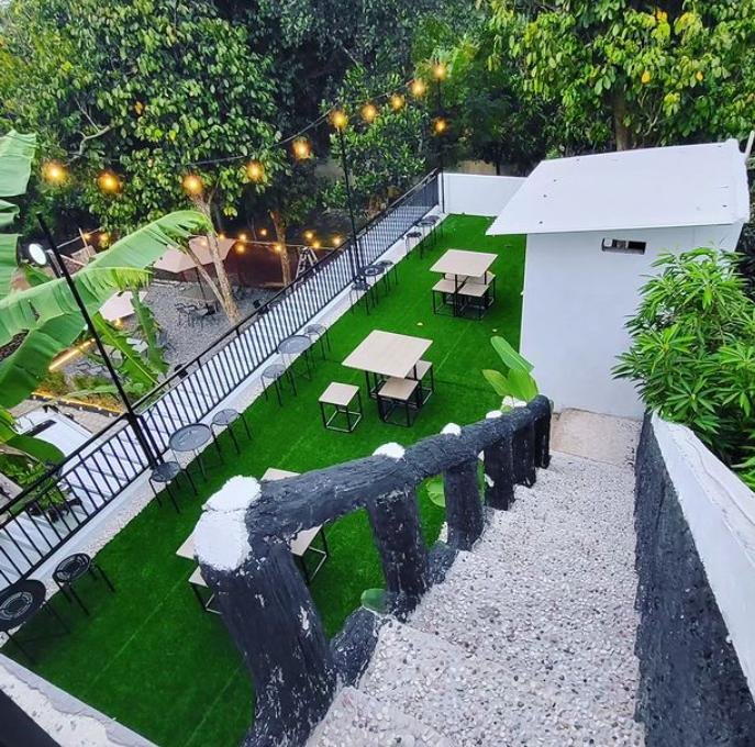 Kafe ini berada jauh dari keramaian, bahkan masih banyak ditemukan pohon-pohon yang menjulang dan angin sepoi-sepoi. Jadi terasa adem, sejuk, dan nyaman.