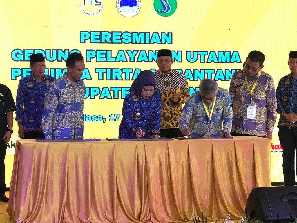 Itu terungkap pada acara Peresmian Gedung Pelayanan Utama Perumda Tirta Al Bantani Kabupaten Serang di halaman Kantor Perumda Tirta Al Bantani Kabupaten Serang, Jalan Kiai Haji Tubagus Ahmad Khotib, Cipare, Kota Serang, Selasa (17/10/2023). Acara peresmian dibuka langsung oleh Bupati Serang Ratu Tatu Chasanah yang juga menandatangani prasasti gedung.