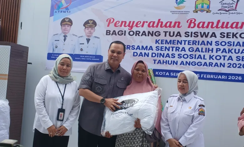 BISNISBANTEN.COM – Kementerian Sosial RI melalui Sentra Galih Pakuan Bogor menyalurkan bantuan asistensi rehabilitasi sosial bagi puluhan keluarga siswa Sekolah Rakyat (SR) di Kota Serang. Penyerahan bantuan ini dihadiri langsung oleh Wali Kota Serang, jajaran Asda, serta Plt Sekertaris Dinas Sosial, Rabu (25/02/26).