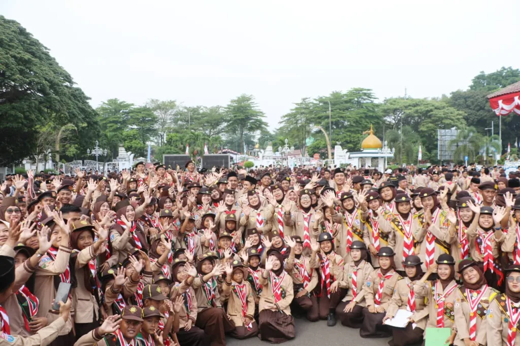 BISNISBANTEN.COM- Bupati Serang Ratu Rachmatuzakiyah (Zakiyah) mengukuhkan 292 Pramuka Garuda Kwartir Cabang (Kwarcab) Serang 2025 di depan Pendopo Bupati Serang, Senin (25/8/2025). Zakiyah berpesan agar semangat Pramuka diimplementasikan dalam kehidupan sehari-hari agar lahir generasi penerus tangguh, kuat, berkarakter, dan berwawasan kebangsaan