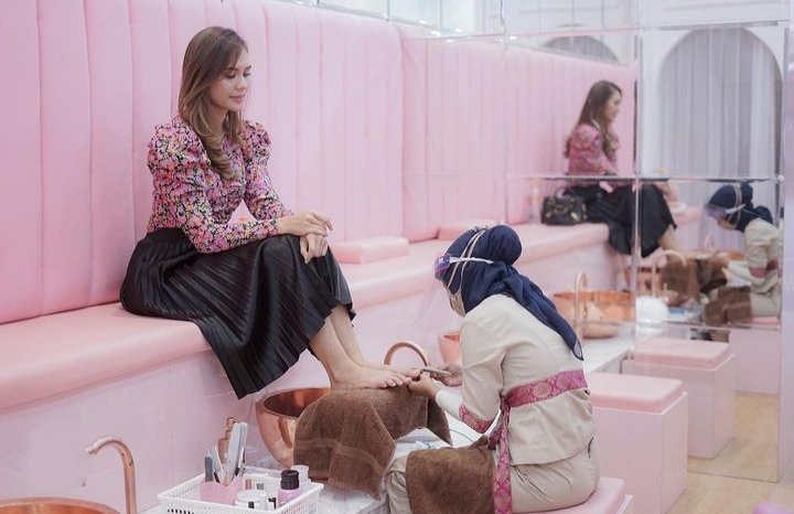 Suasana salon yang mewah dan didominasi dengan warna cat pink akan membuat siapapun betah berlama-lama melakukan perawatan di sini.