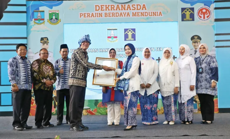 Pada kesempatan itu, dilakukan juga penyerahan Sertifikat Hak Kekayaan Intelektual (HAKI) oleh Kepala Kantor Wilayah (Kanwil) Kementerian Hukum (Kemenkum) Banten Butar Butar yaitu 12 Motif Batik Kabupaten Serang kepada Bupati dan pelaku UMKM.