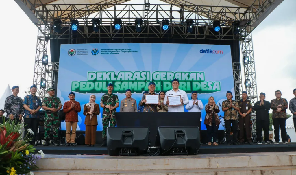 BISNISBANTEN.COM- Menteri Desa dan Pembangunan Daerah Tertinggal (Mendes PDT) RI Yandri Susanto mendeklarasikan Gerakan Desa Peduli Sampah pada kegiatan Bangun Desa Bangun Indonesia di Alun-alun Kecamatan Cikande, Desa Situ Terate, Kabupaten Serang, Jumat (16/5/2025). Gerakan tersebut dinilai untuk menciptakan desa yang bersih, asri, dan sehat dengan mengubah cara pandang masyarakat dalam pengelolaan sampah yang efektif dari sumbernya, sekaligus upaya pelestarian budaya bersih sebagai jati diri masyarakat desa.