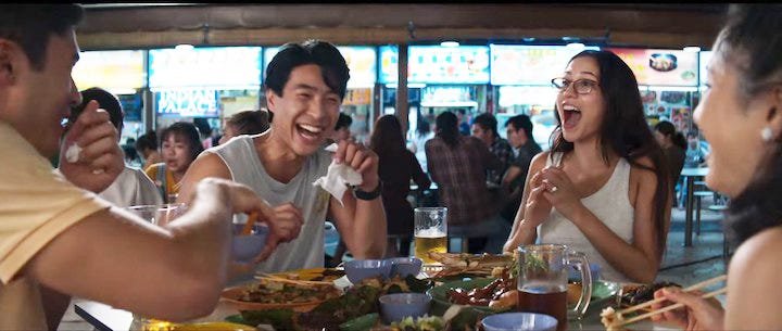 Ketiga, ada kuliner sate. Sate pernah tayang di film Crazy Rich Asians yang ditayangkan pada tahun 2018 lalu. Pada film ini sate hadir di cuplikan atau adegan pemainnya yang menyantap sate. Nama pemain Rachel dan Nick menyantap sate saat sampai di Singapura.