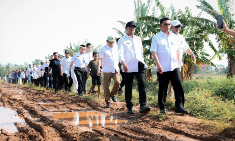 BISNISBANTEN.COM — Gubernur Banten Andra Soni meninjau kondisi jalan poros desa yang menghubungkan dua desa, yakni Desa Sindang Asih dan Desa Badak Anom, Kecamatan Sindang Jaya, Kabupaten Tangerang pada Rabu (10/9/2025). Direncanakan, jalan poros desa itu akan dibangun melalui Program Bangun Jalan Desa Sejahtera (Bang Andra).