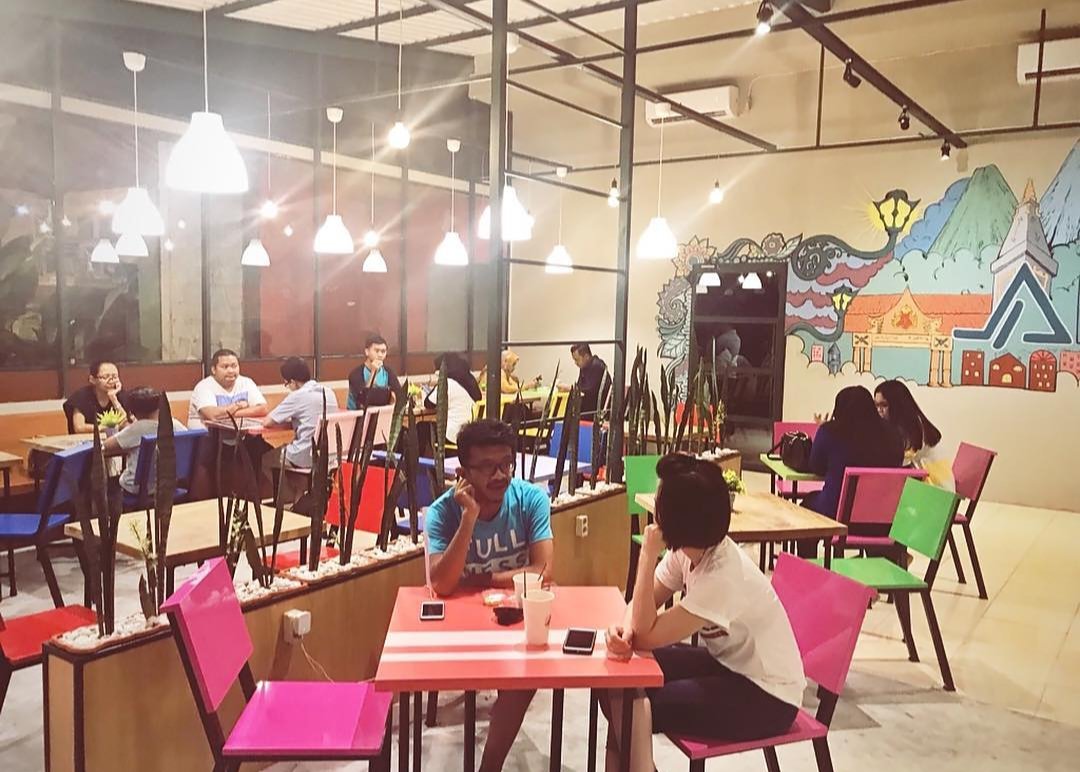 Berbeda dengan kedai kopi kebanyakan yang berkonsep minimalis, kedai kopi milik Rio Febrian ini lebih terlihat playfull karena tembok yang di cat warna-warni sehingga membuat tempat ini semakin instagramable dan artsy.