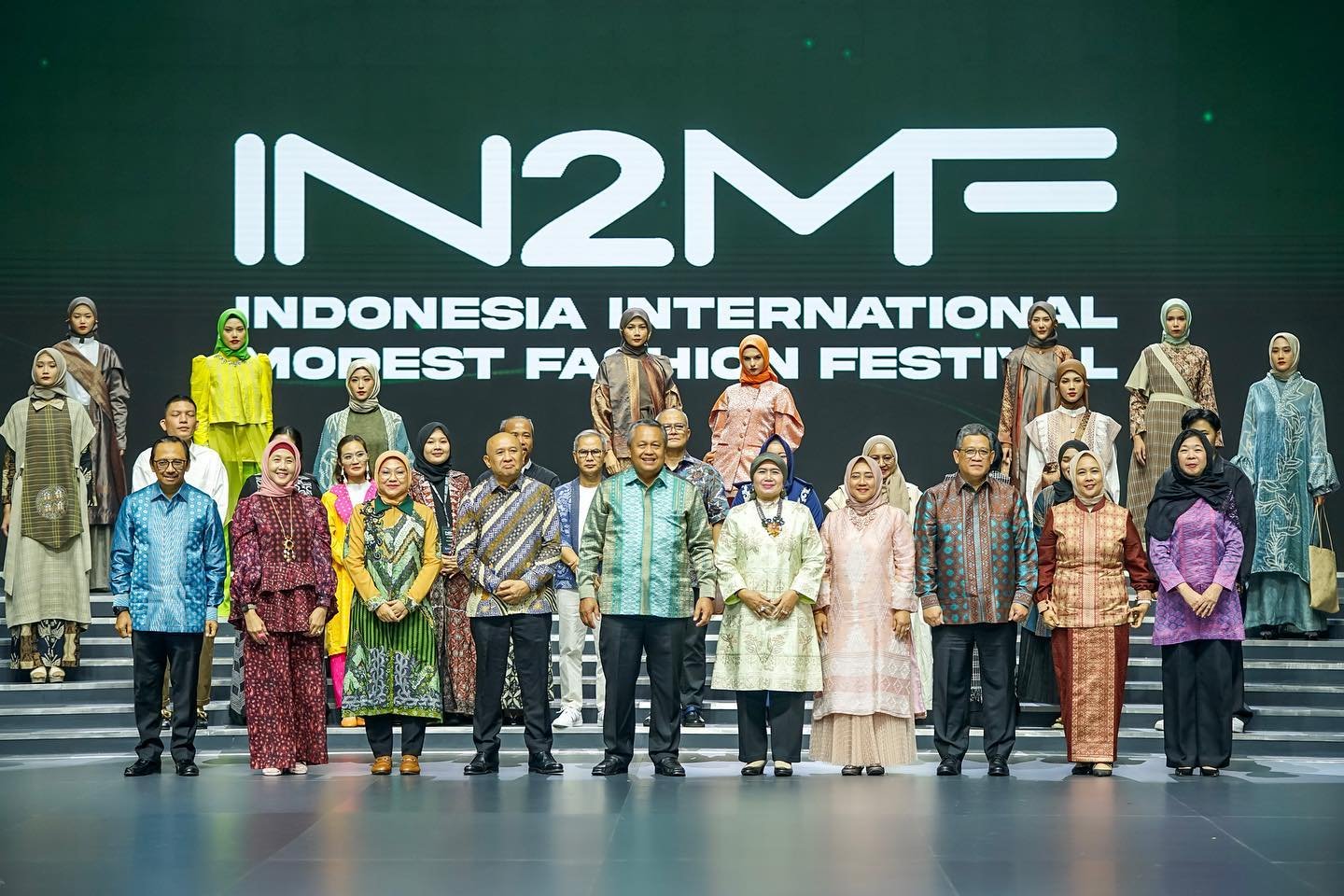 Lebih Ianjut, secara lebih khusus dalam rangka mendukung eksistensi dan daya saing modest fashion berkearifan Iokal Banten, berkat konsistensi dan sinergi kuat antara KPwBI Provinsi Banten dengan pemerintah daerah termasuk Komite Daerah Ekonomi dan Keuangan Syariah (KDEKS) Banten, Banten berhasil mengikutsertkan UMKM Dewi Sambi Kota Tangerang dan Pondok Pesantren Rodhotul Huda Kab. Pandeglang untuk menampilkan karya modest fashion terbaiknya dengan mengangkat kombinasi wastra Batik Banten dan Tenun Baduy pada pernyelenggaraan parade IN2MF yang dihadiri langsung oleh Gubernur Bank Indonesia, Menteri Koperasi dan UKM RI, dan Menteri Ketenagakerjaan RI. Kedua designer Iokal Banten ini juga sebelumnya merupakan peraih penghargaan Juara 2 Modest Young Designer Competition road to IN2MOTION Kategori PonPes dan Juara 3 Modest Young Designer Competition road to IN2MOTION Kategori IJMKM pada FESyar regional Jawa 2023.