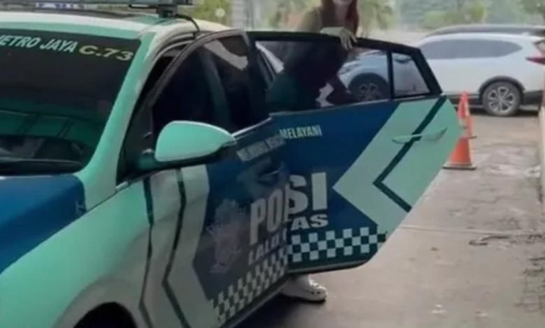 Saat seseorang diangkut oleh mobil polisi biasanya karena ada sesuatu hal yang bermasalah, namun untungnya pasangan tersebut turun dari mobil dengan wajah tertawa dan sumringah seperti mentertawakan diri sendiri akibat mobilnya mogok.