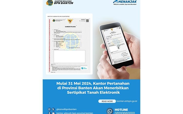 Mulai 31 Mei 2024, Kantor Pertanahan di Provinsi Banten Akan Menerbitkan Sertifikat Tanah Elektronik