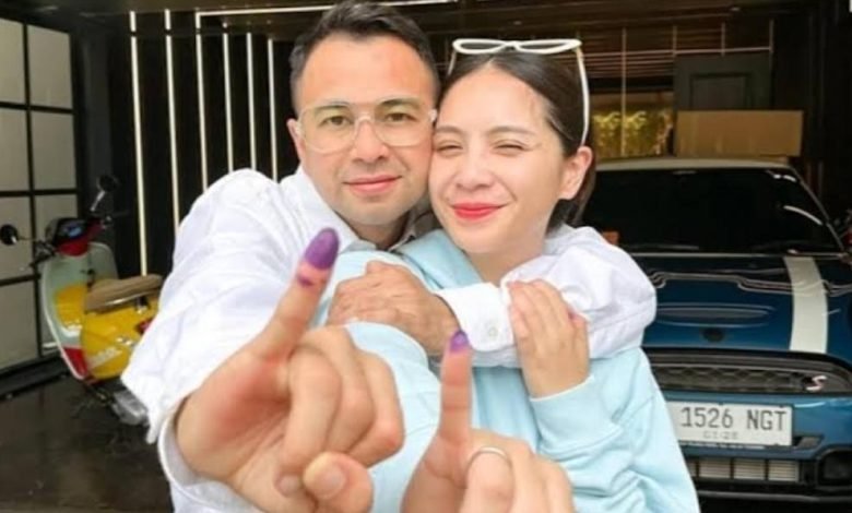 Raffi Ahmad pun sempat menarik tangan Nagita untuk memperlihatkan jari kelingkingnya yang sudah dicap tinta sebagai tanda sudah menyoblos ke hadapan kamera wartawan.