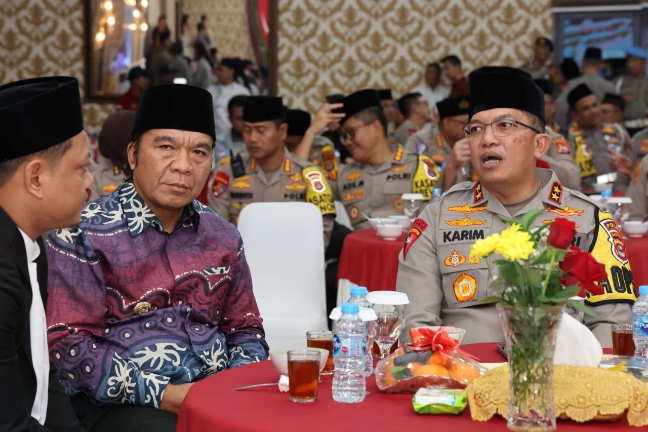 BISNISBANTEN.COM — Penjabat (Pj) Gubernur Banten Al Muktabar hadiri Silaturahmi Pasca Penyelenggaraan Pemilihan Umum (Pemilu) Tahun 2024 yang aman, damai dan kondusif di Daerah Hukum Kepolisian Daerah (Polda) Banten di Markas Kepolisian Daerah Banten, Jl Syech Nawawi Al Bantani, Banjarsari, Kota Serang, Selasa (19/3/2024).