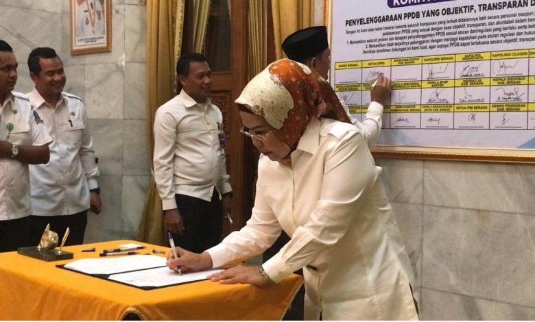 Penandatangan dilakukan Bupati Serang Ratu Tatu Chasanah bersama Kapolres, Dandim, Kejari, Ombudsman, Badan Penjamin Mutu Pendidikan (BPMP), Kepala Dinas Pendidikan dan Kebudayaan (Dindikbud), Inspektur Inspektorat, Kepala Dinas Kependudukan dan Pencatatan Sipil (Disdukcapil), termasuk Persatuan Wartawan Indonesia (PWI).