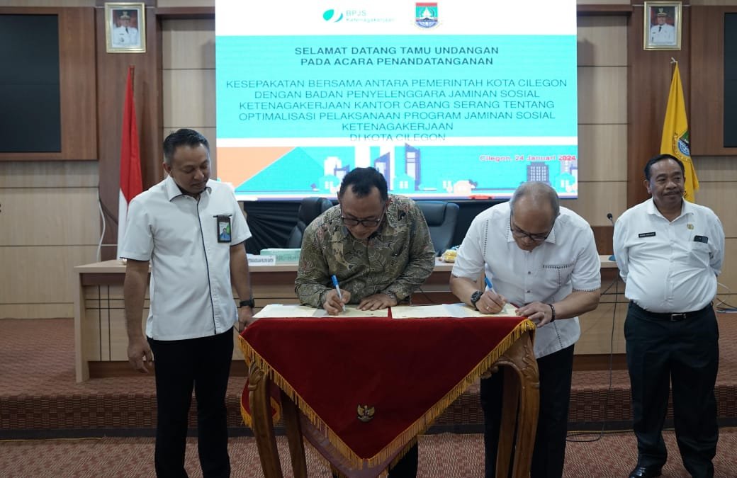 BISNISBANTEN COM – Pemerintah Kota (Pemkot) Cilegon dan BPJS Ketenagakerjaan Cabang Serang, menjalin kerjasama dan menandatangani Memorandum of Understanding (MoU) di Aula Setda II Kota Cilegon, Rabu (24)1/2024).