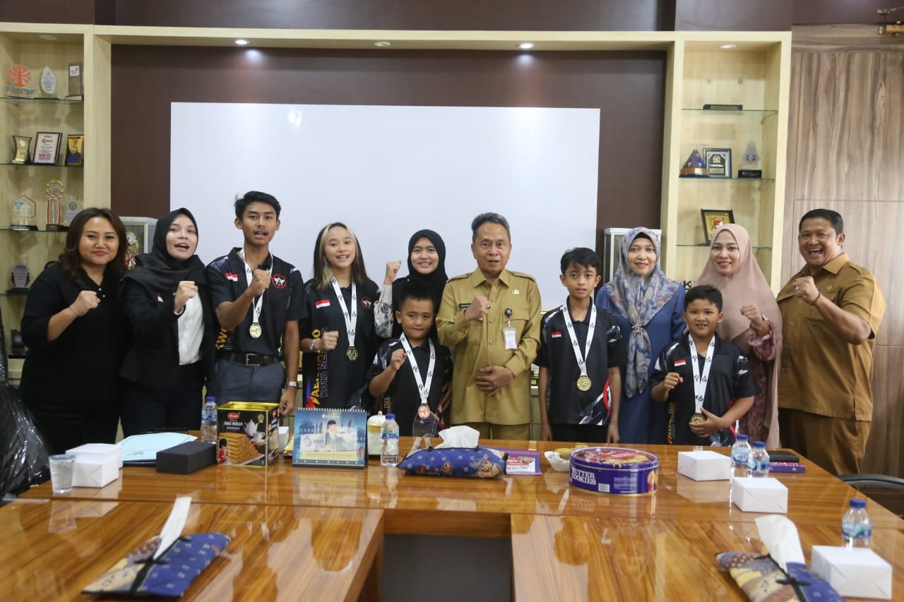 BISNISBANTEN.COM – Penjabat (Pj) Walikota Serang Yedi Rahmat didampingi Kepala Disparpora Kota Serang Sarnata menerima Atlet Taekwondo Kota Serang usai mendapatkan juara pada ajang kompetisi Taekwondo International.