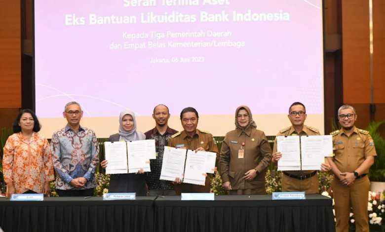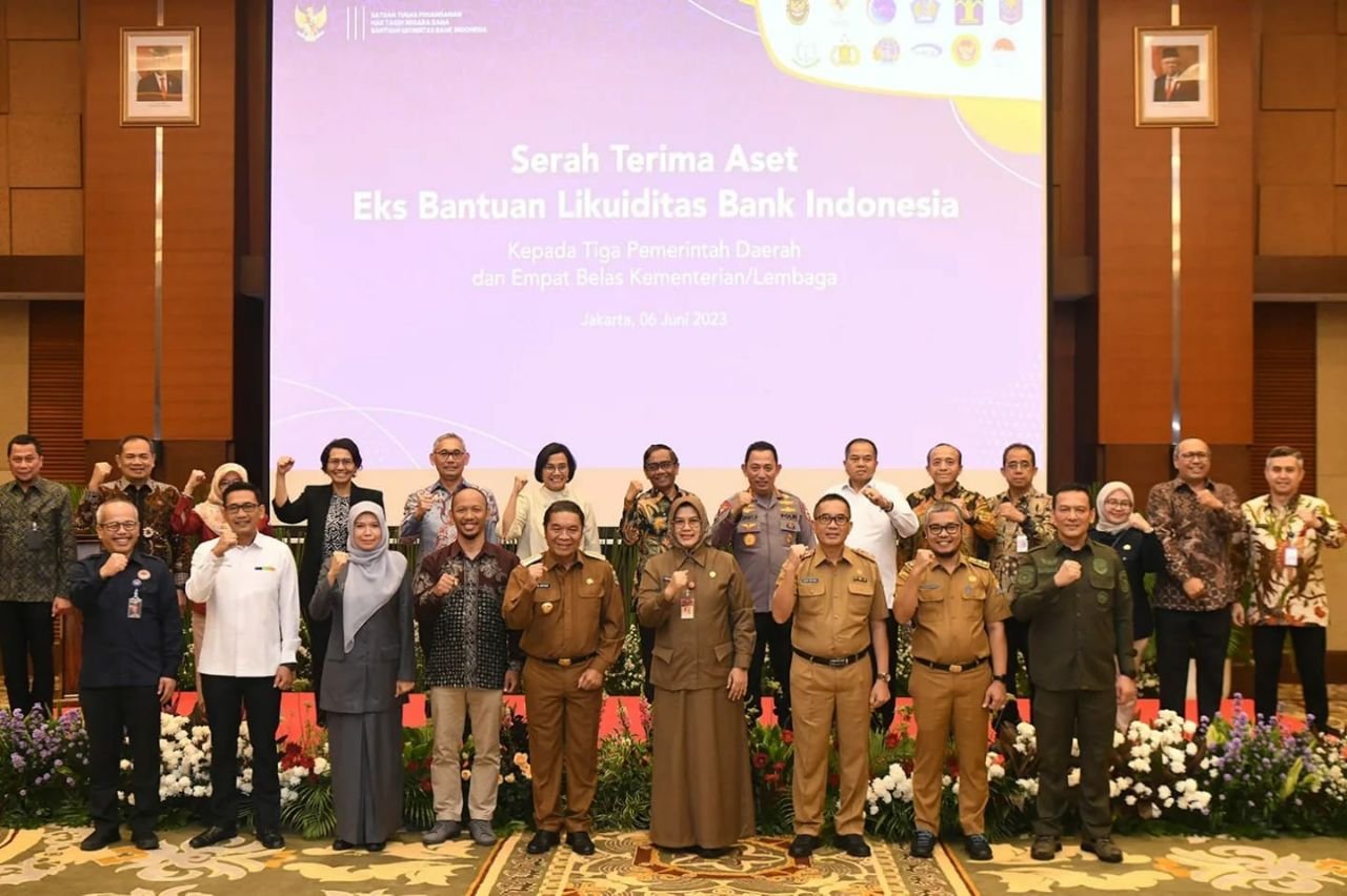 BISNISBANTEN.COM — Pemerintah Provinsi (Pemprov) Banten mendapatkan hibah tanah aset eks Bantuan Likuiditas Bank Indonesia (BLBI) dari Pemerintah Pusat. Penyerahan aset hibah tersebut dilaksanakan di Gedung Kementerian Keuangan RI, Jakarta, disaksikan Menteri Keuangan Sri Mulyani Indrawati, dan Menteri Koordinator Politik Hukum dan Keamanan (Menkopolhukam) Mahfud MD. Penyerahan aset dilaksanakan dengan Penandatanganan Berita Acara Serah Terima (BAST) Aset Eks BLBI dari Kementerian Keuangan ke Pemerintah Provinsi Banten, yang diterima langsung oleh Pj. Gubernur Banten Al Muktabar, didampingi Kepala BPKAD Provinsi Banten Rina Dewiyanti. Penyerahan aset tersebut berdasarkan Keputusan Direktur Jenderal Kekayaan Negara Nomor 546/KN/2022 tanggal 15 November 2022, Provinsi Banten mendapatkan hibah berupa 4 (empat) bidang tanah yang terletak di Jalan H. Saidin, Kelurahan Bambu Apus, Kecamatan Pamulang, Kota Tangerang Selatan, dengan luas total 10.130 m2 dengan nilai Rp. 19.588.018.000,.