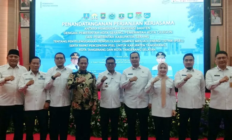 BISNISBANTEN.COM — Pemerintah Provinsi Banten terus mendorong percepatan realisasi program Pengelolaan Sampah menjadi Energi Listrik (PSEL) sebagai solusi penanganan sampah sekaligus penyediaan energi alternatif. Hal itu disampaikan oleh Gubernur Banten, Andra Soni, dalam acara Penandatanganan Perjanjian Kerjasama antara Pemerintah Provinsi Banten dengan Pemerintah Kota Serang, Pemerintah Kota Cilegon, dan Pemerintah Kabupaten Serang tentang Penyelenggaraan Pengelolaan Sampah Menjadi Energi Listrik (PSEL) serta rapat percepatan PSEL untuk Kabupaten Tangerang, Kota Tangerang dan Kota Tangerang Selatan, Jum’at (27/3/2026).