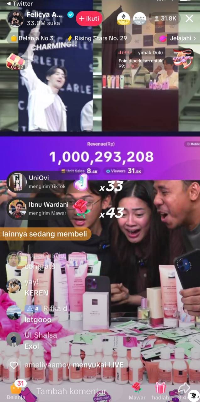 Tak tanggung-tanggung hasil tersebut didapatkan hanya dalam waktu 4 Jam 20 menit. Karenanya penjualan Scarlett Whitening menduduki peringkat pertama penjualan terlaris dalam Live Tiktok. (Sarah)