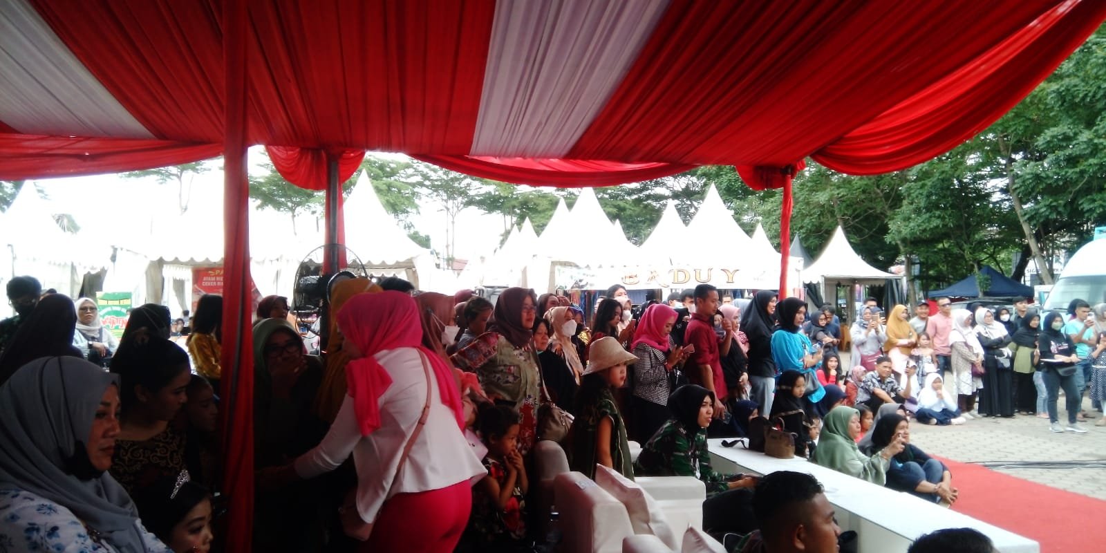 Selain antusias dari para peserta dengan adanya event ini, masyarakat pun khususnya pengunjung pun ramai memadati acara ini untuk mensupport para peserta dan ingin melihat para peserta tampil dengan baju yang menawan.