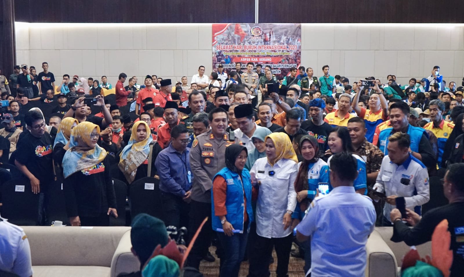 Acara berlangsung meriah dan dihadiri langsung Bupati Serang Ratu Tatu Chasanah. Turut mendampingi Tatu, yakni unsur Forum Koordinasi Pimpinan Daerah (Forkopimda) Kabupaten Serang, Kepala Dinas Tenaga Kerja dan Transmigrasi (Disnakertrans) Kabupaten Serang Diana A Utami dan jajaran, Kepala Badan Kesatuan Bangsa dan Politik (Kesbangpol) Kabupaten Serang Epi Priatna dan jajaran, para pimpinan Aliansi Serikat Pekerja dan Serikat Buruh (ASPSB) Kabupaten Serang, serta dari Asosiasi Pengusaha Indonesia (Apindo) Kabupaten Serang.