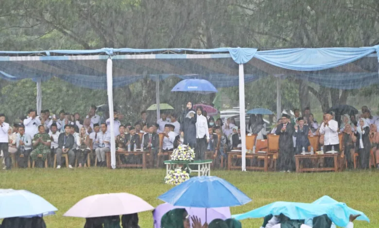 BISNISBANTEN.COM- Bupati Serang Ratu Rachmatuzakiyah (Zakiyah) memimpin Upacara Peringatan Hari Amal Bhakti (HAB) Kementerian Agama (Kemenag) ke-80 tingkat Kabupaten Serang di Lapangan Pondok Pesantren (Ponpes) Darunnajah 14 Kecamatan Pabuaran, Kabupaten Serang, Sabtu (3/1/2026). Meski diguyur hujan deras, tak menghentikan momen sakral yang digelar rutin tahunan setiap 3 Januari tersebut.