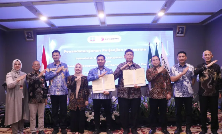 BISNISBANTEN.COM – Pemerintah Kabupaten (Pemkab) Serang resmi memindahkan Pengelolaan Rekening Kas Umum Daerah (RKUD) dari Bank bjb Kantor Cabang Khusus (KCK) Banten ke Bank Banten yang ditandai Penandatanganan Perjanjian Kerjasama (PKS) antara Pemkab Serang dengan Bank Pembangunan Daerah Banten (Perseroda) Tbk tersebut tentang Penyimpanan Uang Daerah di Aston Serang Hotel dan Convention, Kamis (9/4/2026).
