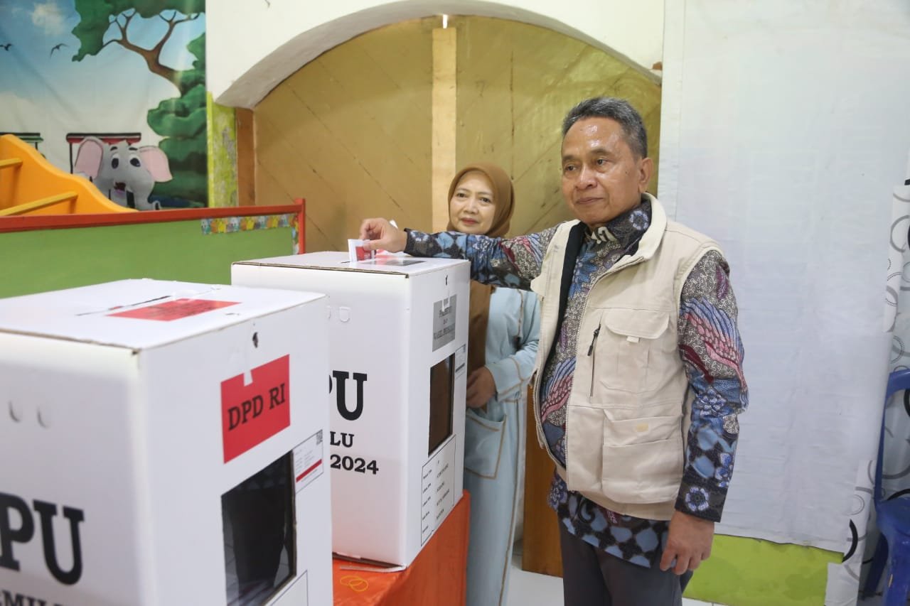 “Alhamdulillah tadi sudah memilih bersama istri dan tiga anak. Sudah menjalankan tugas sebagai warga negara dengan baik. Mudah-mudahan Pemilu yang kita laksanakan berjalan damai, aman dan tidak ada hambatan apapun,” ujarnya.