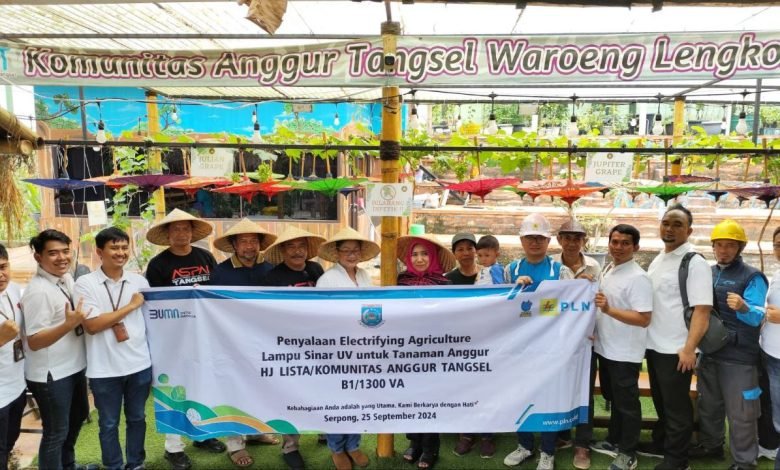 BISNISBANTEN.COM PT PLN (Persero) Unit Induk Distribusi (UID) Banten melalui program _Electrifying Agriculture terus mendukung sektor pertanian dengan inovasi penggunaan teknologi listrik. Kali ini, PLN berkolaborasi dengan Komunitas Anggur Tangerang Selatan melalui program “Menyala Anggurku”, yang menghadirkan solusi inovatif berupa penyediaan lampu sinar ultraviolet (UV) untuk meningkatkan produktivitas dan kualitas tanaman anggur di wilayah tersebut.