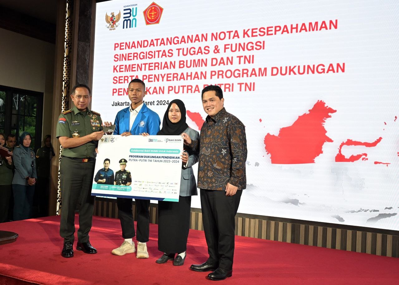 Untuk tahun 2024 ini, Kementerian BUMN dan sinergi BUMN juga tetap hadir dalam memberikan dukungan pendidikan bagi 1.850 Putra dan Putri TNI yang berprestasi di 38 Provinsi di Indonesia. (susi)