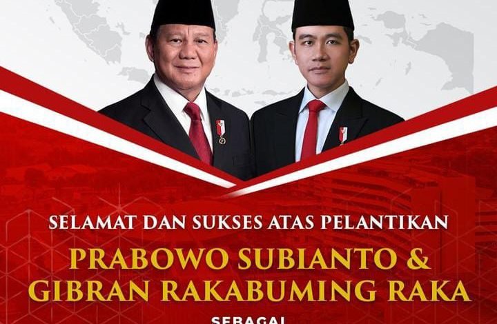 “Selamat atas pelantikan Prabowo Subianto dan Gibran Rakabuming Raka sebagai Presiden dan Wakil Presiden Republik Indonesia masa jabatan 2024-2029. Semoga amanah besar ini dapat dijalankan dengan bijaksana, membawa bangsa menuju kemajuan, keadilan, dan kesejahteraan.