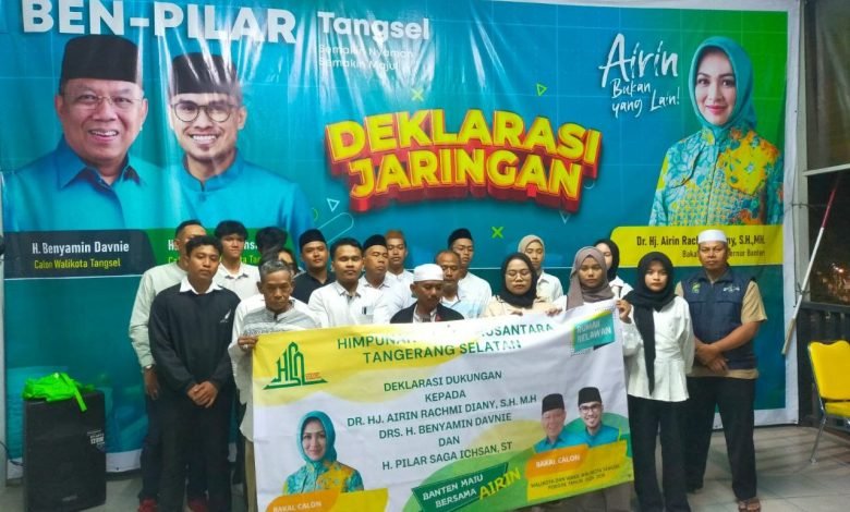 BISNISBANTEN.COM — Bakal calon gubernur Banten Airin Rachmi Diany dinilai punya misi dan program bidang keagamaan yang layak didukung. Misi tersebut membuat Himpunan Santri Nusantara Tangerang Selatan (Hisnu) mendeklarasikan dukungan untuk Airin di Pilkada Banten.
