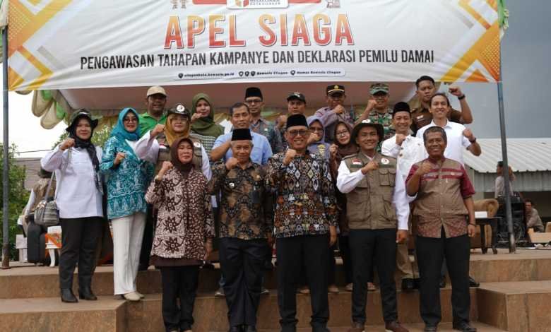 BISNISBANTEN.COM – Badan Pengawas Pemilihan Umum (Bawaslu) Kota Cilegon menggelar Apel Siaga Pengawasan Tahapan Kampanye dan Deklarasi Pemilu Damai, di Lapangan Sepak Bola Simpati Kubang Welingi, Kecamatan Purwakarta, Jumat (24/11/2023).