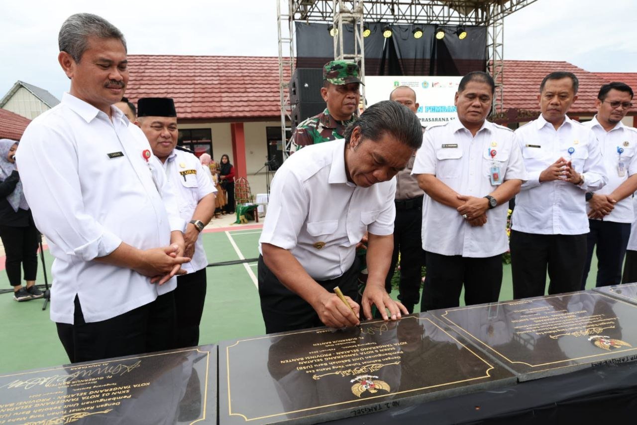 BISNISBANTEN.COM — Penjabat (Pj) Gubernur Banten Al Muktabar meresmikan sejumlah Sarpras Sekolah Khusus (SKh) Negeri 1 Kota Tangerang Selatan (Tangsel), Rabu (7/2/2024). Peresmian dilakukan dengan penandatangan prasasti dan pengguntingan pita.