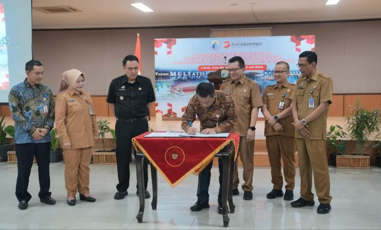 Penandatanganan Kerja Sama (PKS) ini dilakukan oleh Plt. Direktur Utama Bank Banten, Rodi Judo Dahono dengan Kepala BKAD Lebak, Halson Nainggolan dan Kepala BAPENDA Lebak, Dodi Irawan di damping oleh Pj. Bupati Lebak, Iwan Kurniawan; Sekda Lebak, Budi Santoso; Plh. Sekda Provinsi Banten, Virgojanti; Direktur Operasional Bank Banten, Bambang Widyatmoko dan turut dihadiri oleh Kepala BPKAD Provinsi Banten, Rina Dewiyanti; Direktur Kepatuhan Bank Banten, Eko Virgianto; Pejabat Eselon II Kabupaten Lebak, Kepala OPD dan Camat Se-Kabupaten Lebak.