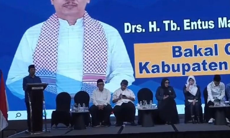 BISNISBANTEN.COM- Bakal Calon Bupati Pandeglang Tubagus Entus Mahmud Sahiri menyampaikan visi misi pada agenda Pemaparan Visi Misi Calon Kepala Daerah Gubernur/Wakil Gubernur, Bupati/Wakil Bupati, dan Walikota/Wakil Walikota periode 2024-2029 Partai Nasional Demokrat (NasDem) se-Banten di Ballroom Aston Serang Hotel & Convention Center, Rabu (15/5/2024). Dalam paparannya, Entus menjanjikan perbaikan kesejahteraan pegawai Aparatur Sipil Negara (ASN) dan meningkatkan upaya pencegahan korupsi di lingkungan Pemkab Pandeglang.