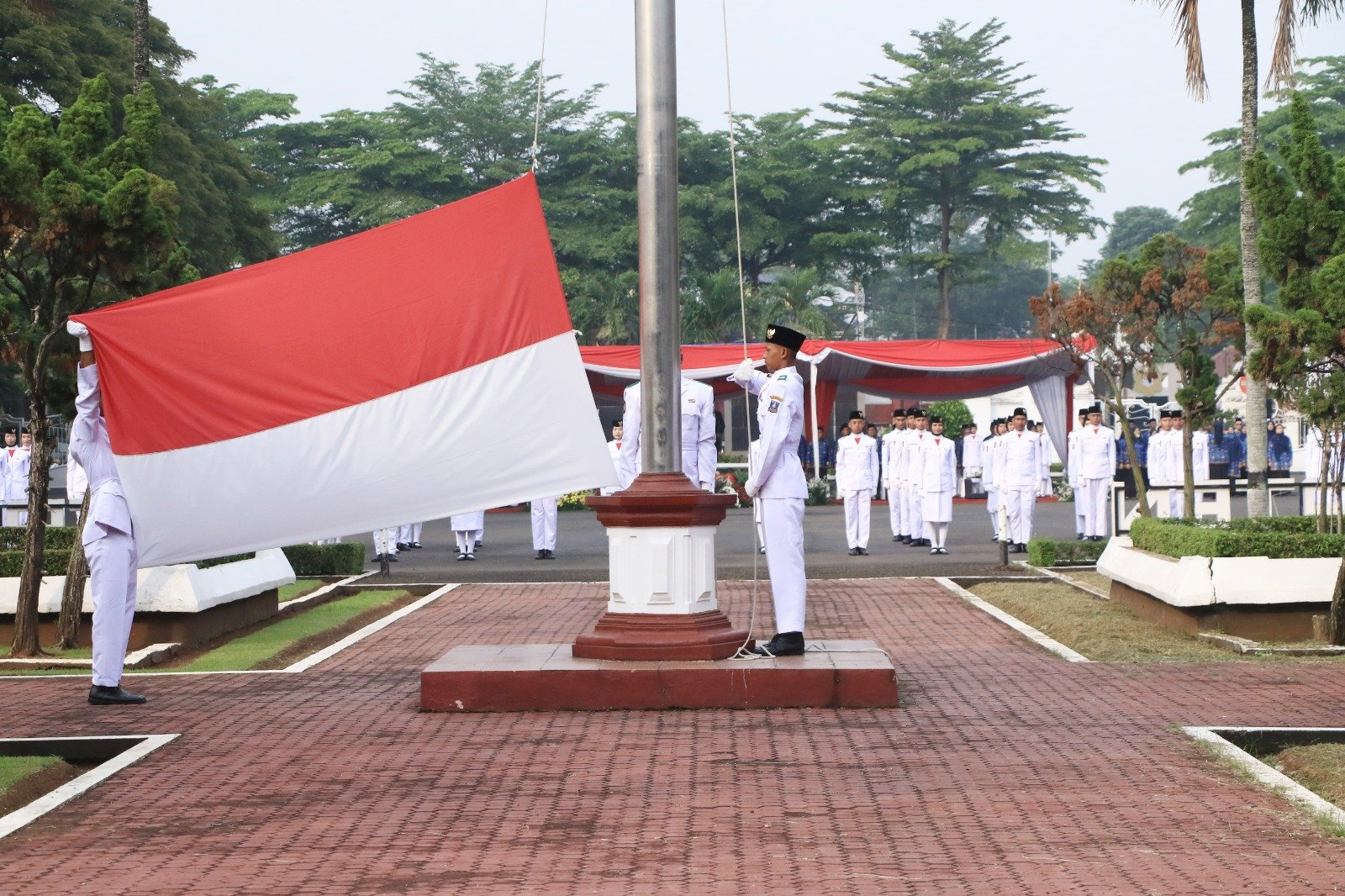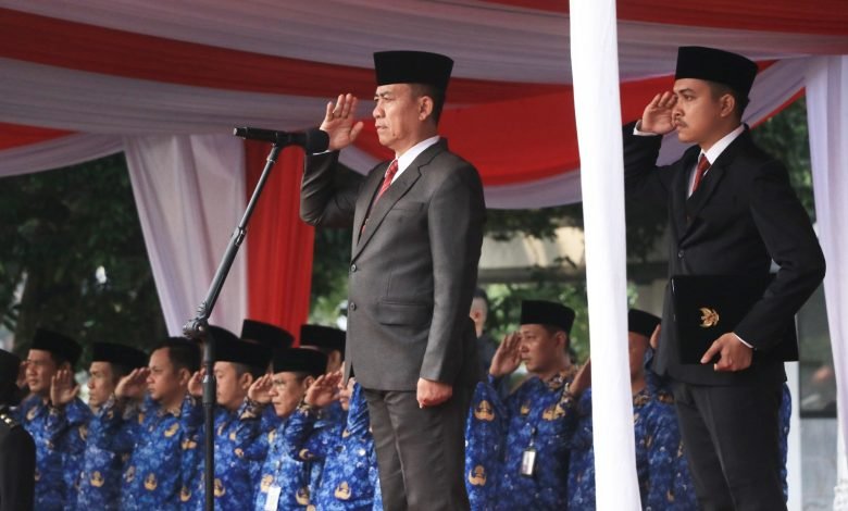 BISNISBANTEN.COM – Sekretaris Daerah (Sekda) Kabupaten Serang Nanang Supriatna memimpin Upacara Hari Lahir Pancasila (Harlah) 2024 yang diikuti seluruh jajaran pegawai Asparatur Sipil Negara (ASN) di lingkungan Pemkab Serang di Halaman Pendopo Bupati, Sabtu (1/6/2024). Nanang pun berpesan agar nilai-nilai Pancasila selalu dijaga dan diamalkan, jangan hanya dihapalkan. Terutama pegawai ASN yang merupakan pelayan masyarakat.