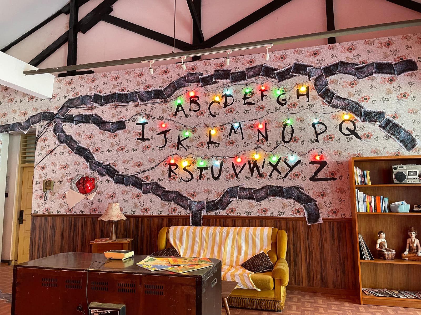 Seperti ditweet akun @NetflixID, begitu masuk area, bisa langsung merasakan duduk-duduk di ruang tamunya keluarga Byers. Lengkap dengan lampu-lampu ikonik banget seperti di Stranger Things Season 1.