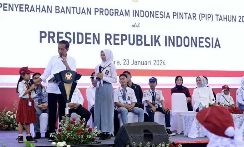 BISNISBANTEN.COM — Presiden Joko Widodo didampingi Ibu Iriana Joko Widodo menyerahkan bantuan Program Indonesia Pintar (PIP) yang digelar di GOR Mustika Blora, Kabupaten Blora, Provinsi Jawa Tengah, pada Selasa, 23 Januari 2024. Dalam sambutannya, Kepala Negara menekankan pentingnya pendidikan bagi generasi muda di Indonesia untuk menghadapi tantangan dan persaingan di masa mendatang yang makin sulit.