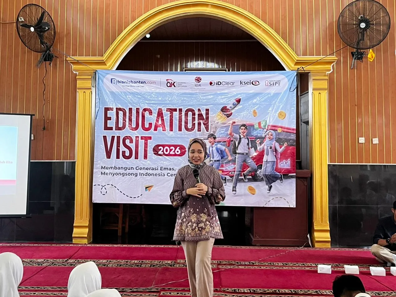 BISNISBANTEN.COM – SMAN 5 Kota Serang menjadi sekolah dan kampus ketiga yang didatangi tim Bisnis Banten dan Bursa Efek Indonesia dalam program Education Visit 2026. Pada Senin (2/2/2026) sekitar 200 siswa jurusan IPA dan IPS menyimak dengan tertib penjelasan tentang investasi dan saham di masjid sekolah.