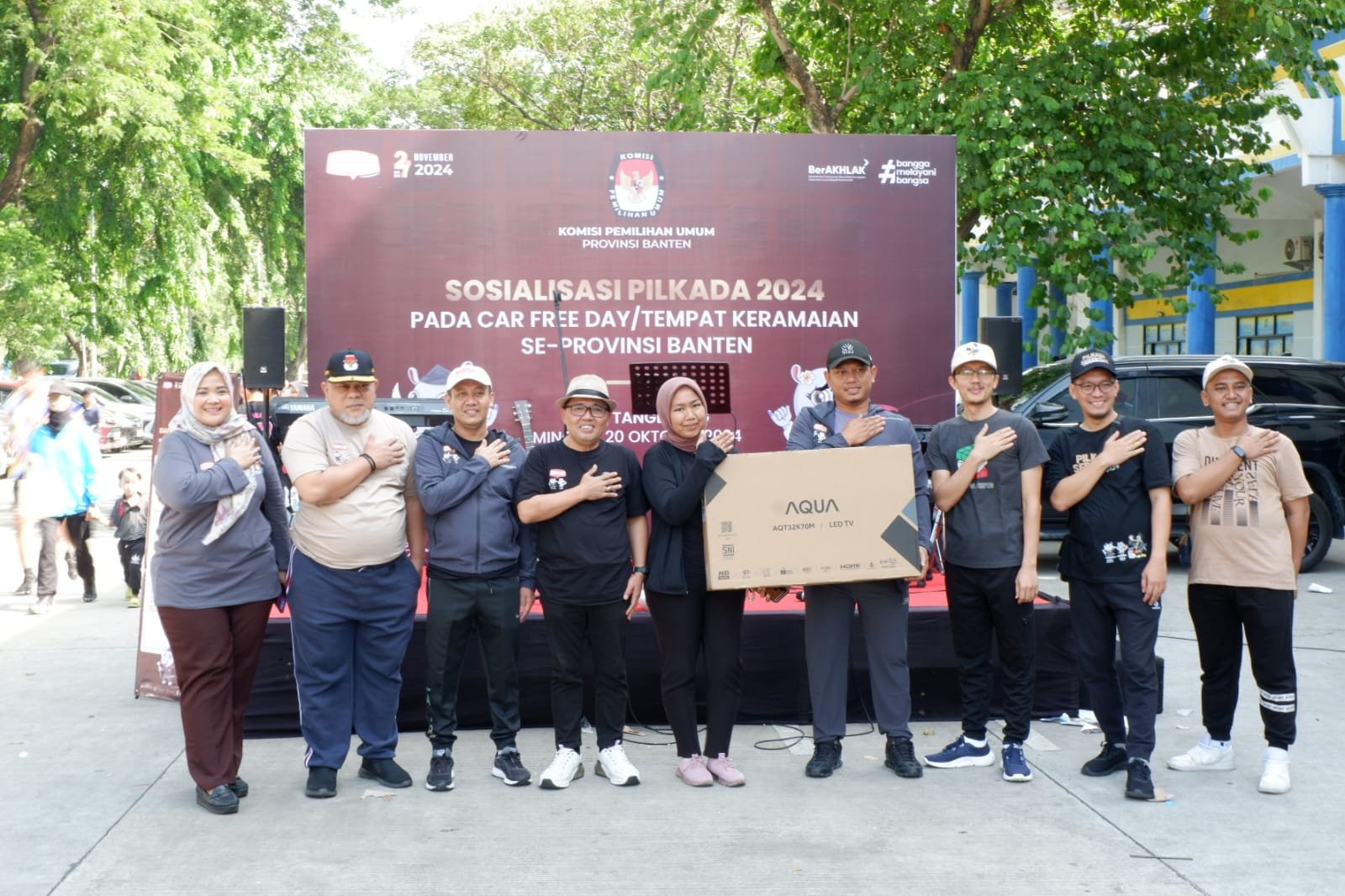Pada kegiatan tersebut, KPU Banten bersama KPU Kota Tangerang membuka pelayanan kepada masyarakat yang sedang berolahraga untuk mengecek Daftar Pemilih Tetap (DPT) Pilkada Banten 2024.