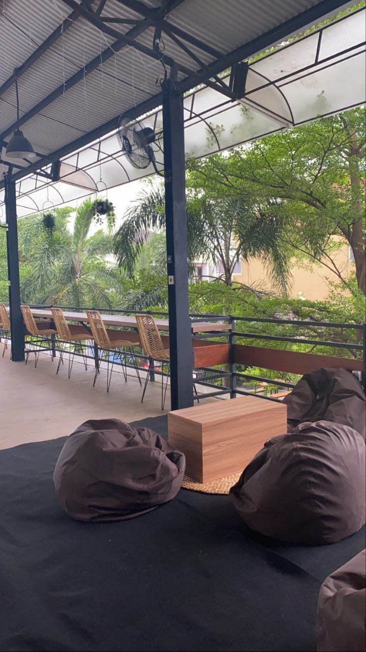 Kafe dua lantai yang dibuka sejak 4 Desember 2020 ini memiliki konsep neighborhood coffeeshop. Suasananya asri dan segar karena banyak pepohonan di sekeliling kafe.