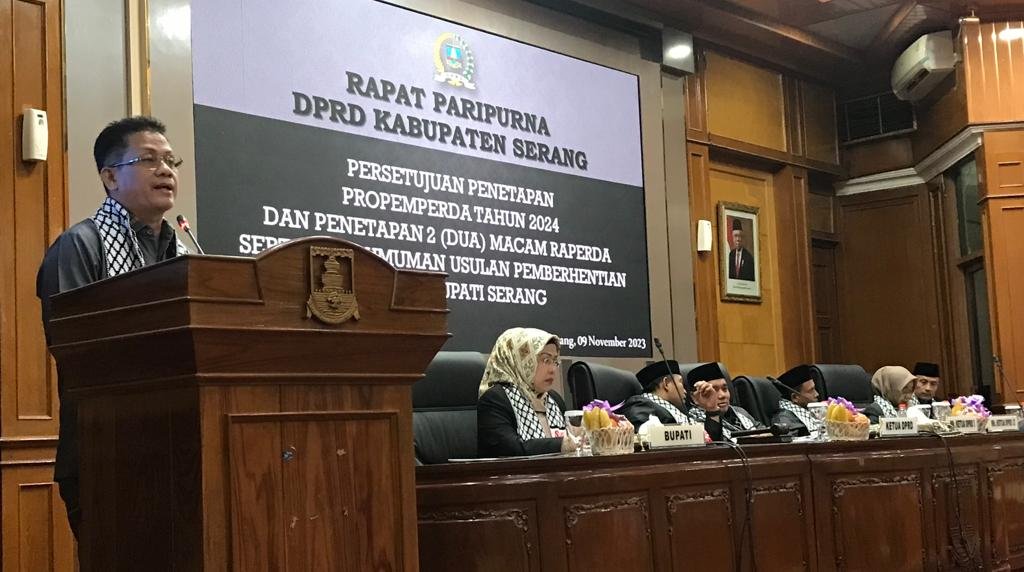 Selain pengumuman usulan pemberhentian Wakil Bupati Serang, pada Sidang Paripurna DPRD Kabupaten Serang juga membahas Persetujuan Penetapan Program Pembentukan Peraturan Daerah (Propemperda) Tahun 2024 dan Penetapan 2 (Dua) macam Raperda. Yang menarik, dalam sidang Bupati Serang beserta unsur pimpinan dan anggota DPRD Kabupaten Serang mengenakan syal bendera Palestina sebagai bentuk dukungan terhadap Palestina.(Nizar)