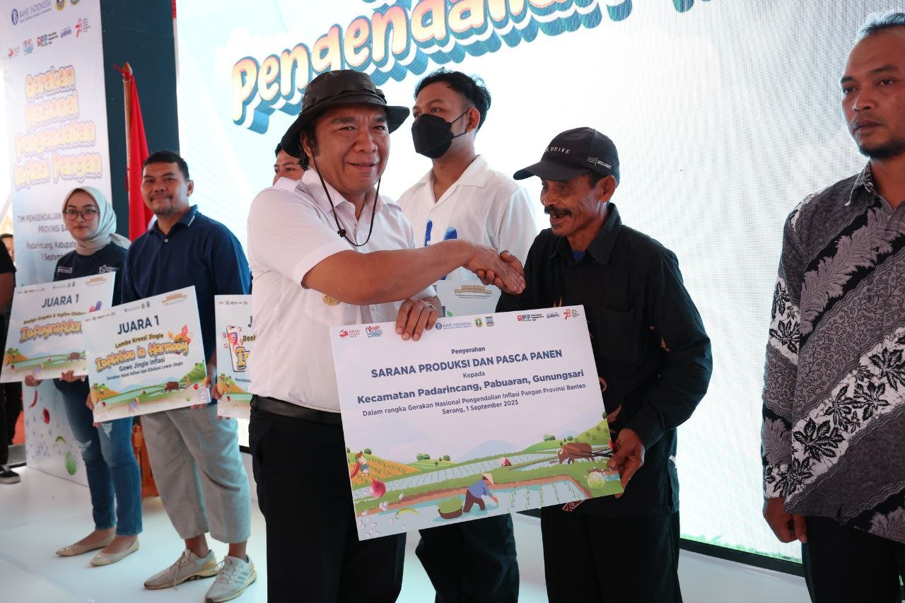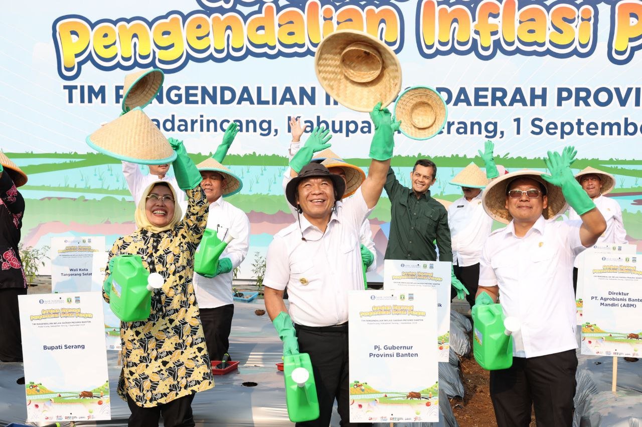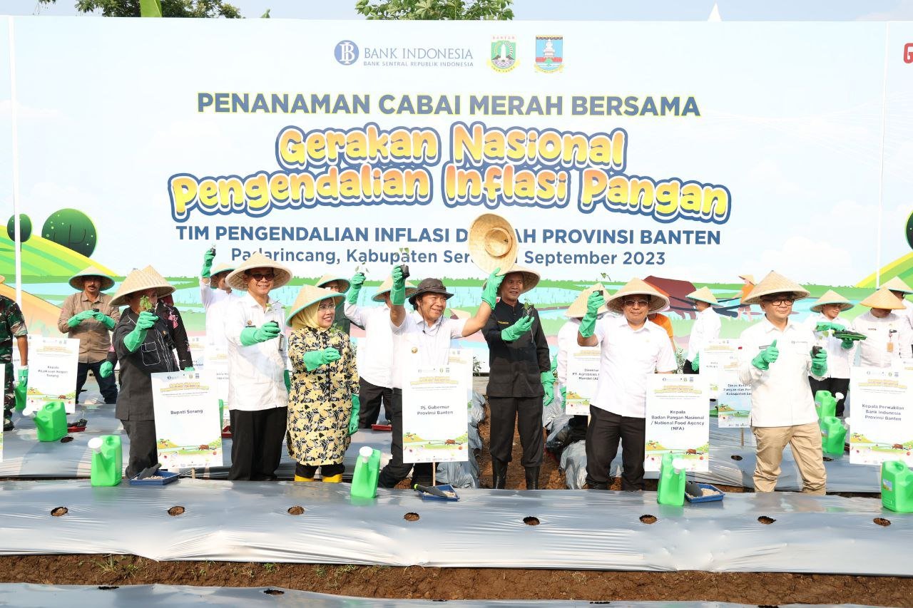 BISNISBANTEN.COM —  KPw Bank Indonesia Provinsi Banten bersinergi bersama Pemerintah Provinsi Banten dan Pemerintah Kabupaten Serang dalam wadah koordinasi Tim Pengendalian Inflasi Daerah (TPID) Banten telah melakukan Gerakan Nasional Pengendalian Inflasi Pangan (GNPIP) Provinsi Banten 2023. Ini sebagai wujud komitmen memperkuat ketahanan pangan dan menjaga kestabilan harga yang berlangsung pada 1 September 2023, bertempat di Kecamatan Padarincang, Kabupaten Serang, Provinsi Banten. GNPIP Banten 2023 dihadiri oleh Kepala Badan Pangan Nasional (Bapanas) Arief Prasetyo Adi, Pj. Gubernur Banten, Dr. Al Muktabar, M.Sc., Bupati Serang, Hj. Ratu Tatu Chasanah, SE, M.Ak., Kepala Perwakilan Bank Indonesia Provinsi Banten, Imaduddin Sahabat beserta Forkompimda dan para pejabat di Kabupaten/Kota se-Banten. Kegiatan ini merupakan wujud sinergi dan