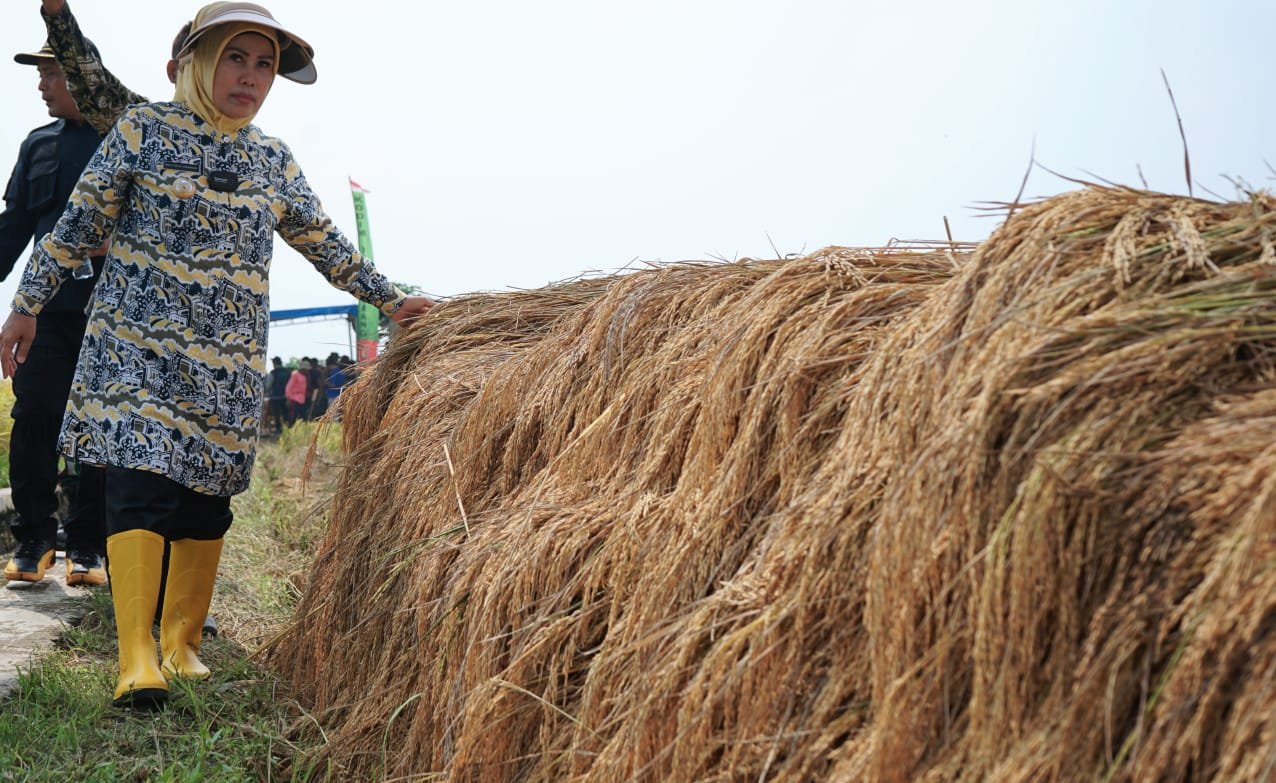 BISNISBANTEN.COM – Bupati Serang Ratu Tatu Chasanah menjadikan pertanian padi di Kecamatan Tirtayasa sebagai role model bagi wilayah lain di Kabupaten Serang. Itu menyusul panen padi pada acara Panen Raya di Desa Laban, Kecamatan Tirtayasa, Kabupaten Serang, Kamis (16/3/2023) yang dipimpin Tatu hasilnya maksimal, mencapai 9 ton gabah kering giling (gkg) per hektare.