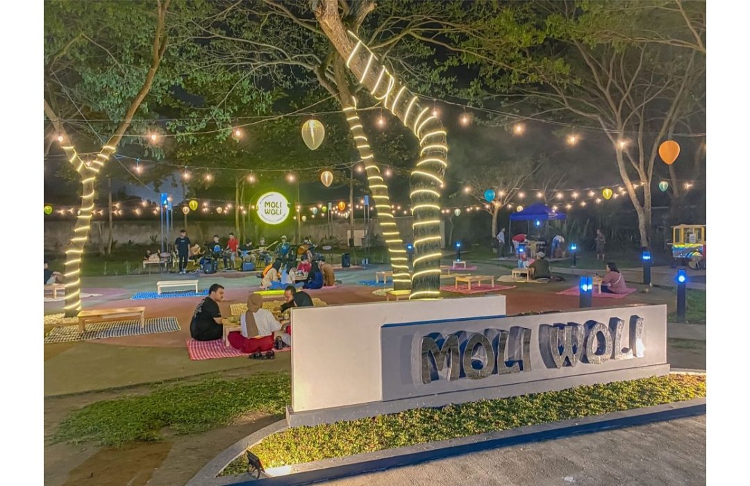 Saat malam tiba, suasana Moli Woli akan terlihat semakin menawan dengan lampu-lampu di sekelilingnya.