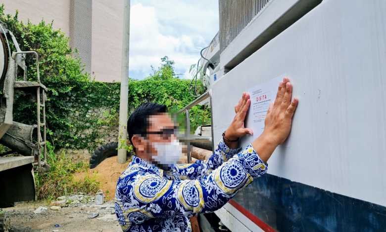 Penyitaan telah dilakukan dengan menempel segel sita pada Truck Concrete Pump Tahun 2013 warna putih di hari Selasa, 22 Maret 2022.