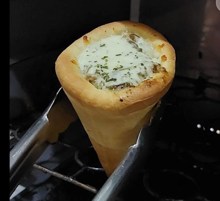 Di sini, Anda akan merasakan sensasi berbeda makan pizza karena bentuknya yang unik seperti cone dan mini jadi mudah untuk dinikmati.